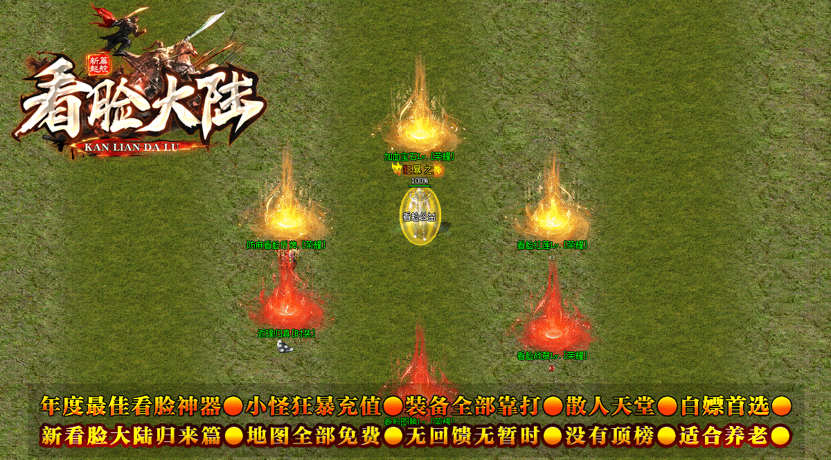 无顶赞无回馈.没有充值地图.小怪可爆充值,零元可畅玩,只要时间够.土豪随便揍.有时间全满毕业.